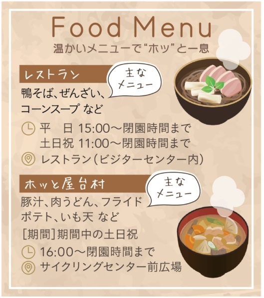 園内の屋台村では“豚汁”や“あたたかフード”が登場することも(昨年の情報より)
