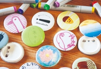 描いたオリジナルイラストを、その場で缶バッチに仕上げます。