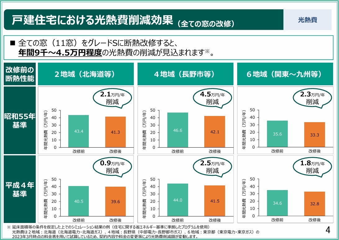 全ての窓の改修を、Sグレードの窓に断熱改修すると、
