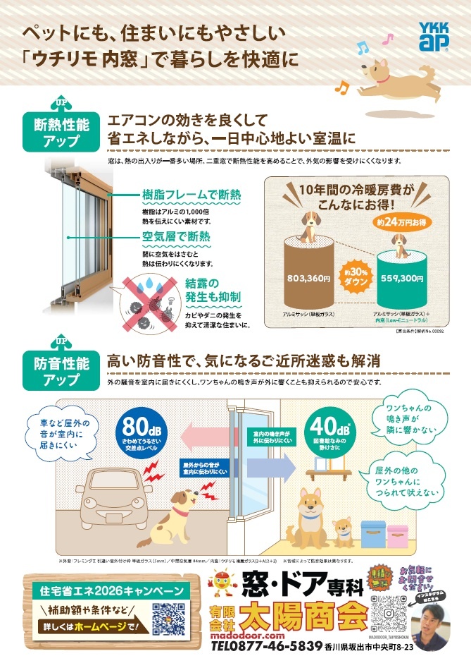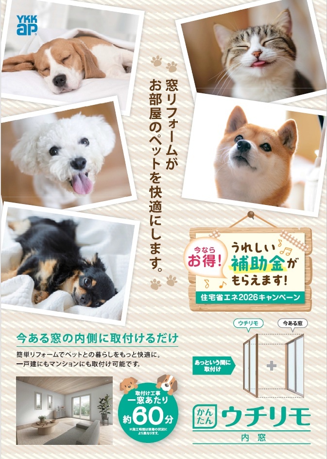 人にも、ペットにも優しく、嬉しい内窓リフォーム(^-^)