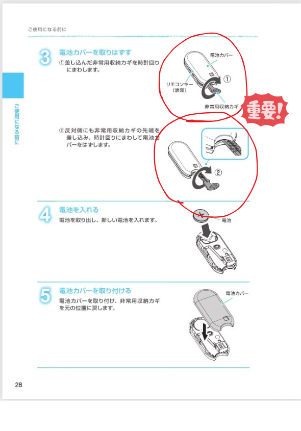 鍵を壊さないためにも、説明書に従って電池交換をお願いいたします!!