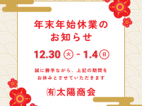 【年末年始 休業日のお知らせ】 MADOショッフ゜坂出中央店 ㈲太陽商会