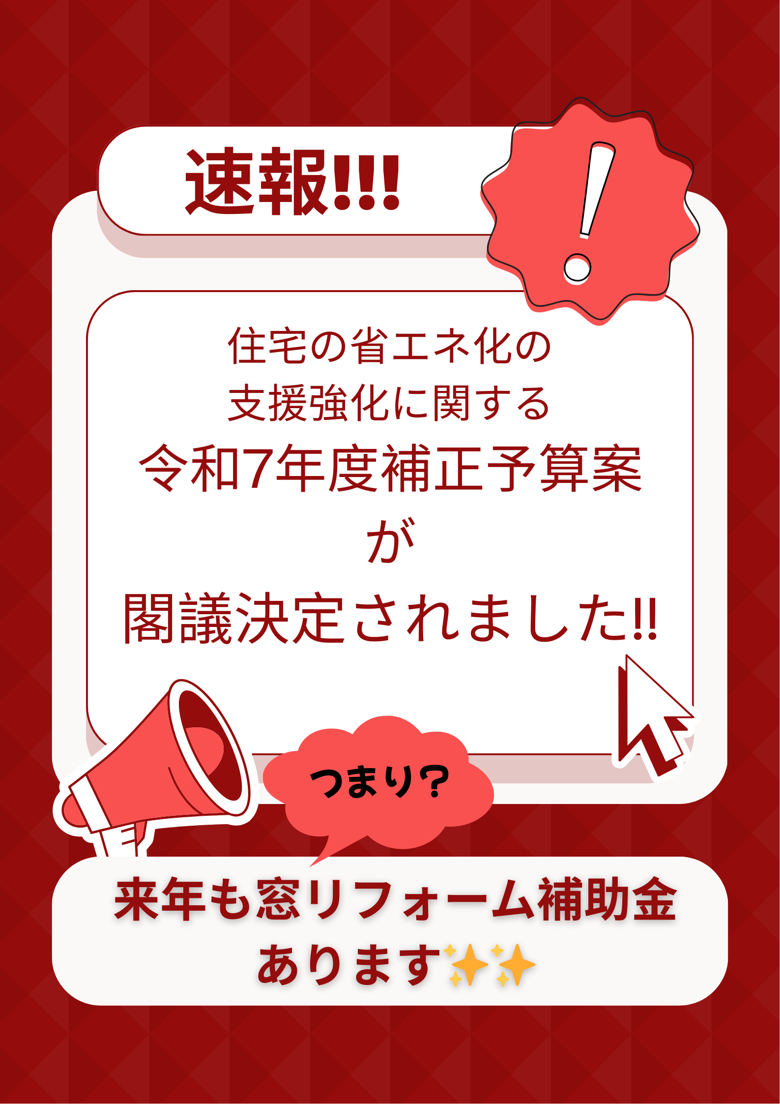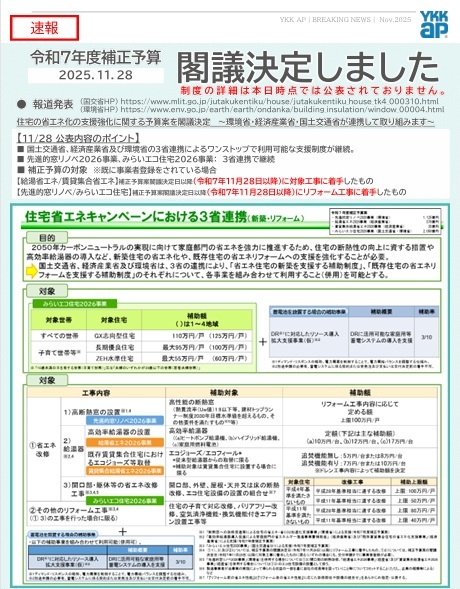 令和7年度補正予算【住宅の省エネ化の支援強化に関する予算案】閣議決定しました✨✨