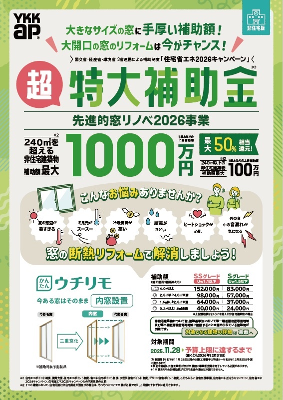 「先進的窓リノベ2026事業」において、