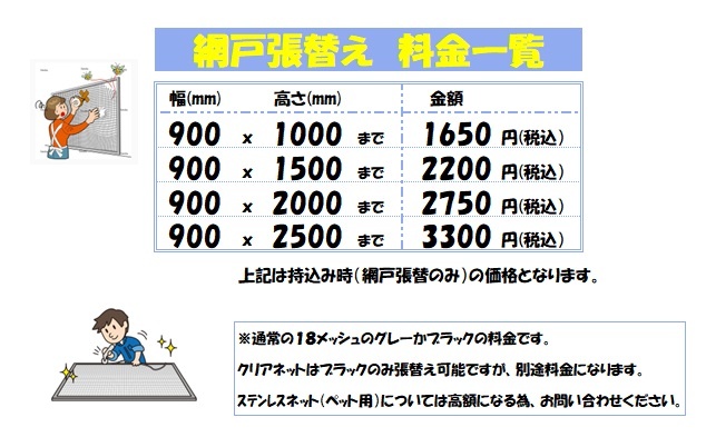 網戸の張り替えいくらくらい??網戸張替え料金の参考にしてください☆彡☆ 坂出市㈲太陽商会☆のコピー