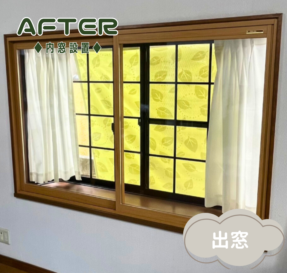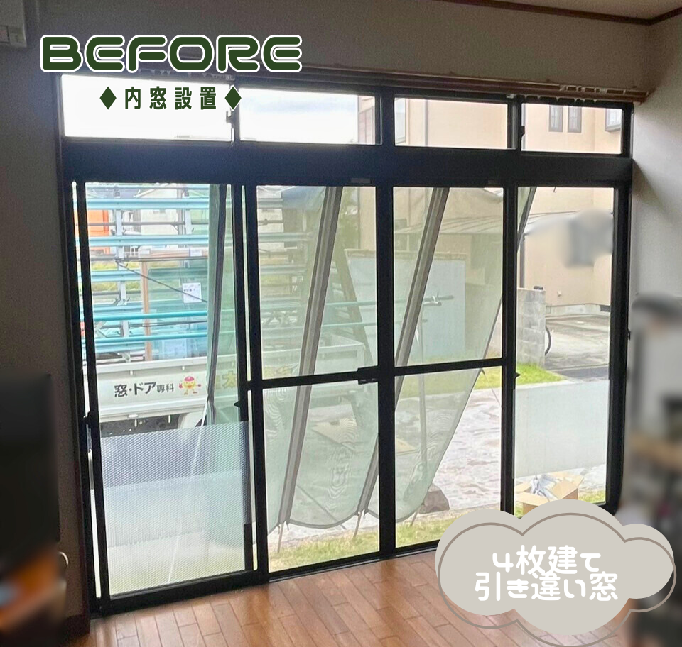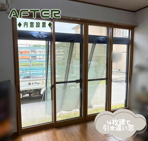 今回は 『リビングの4枚建て掃き出し窓』 と 『出窓』 の2か所に、断熱性能の高い『内窓』を設置しました。