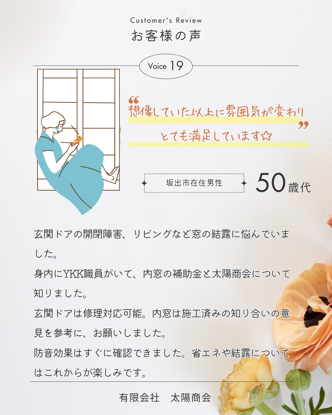 身内にYKK職員がいて、内窓の補助金と太陽商会について知りました。
