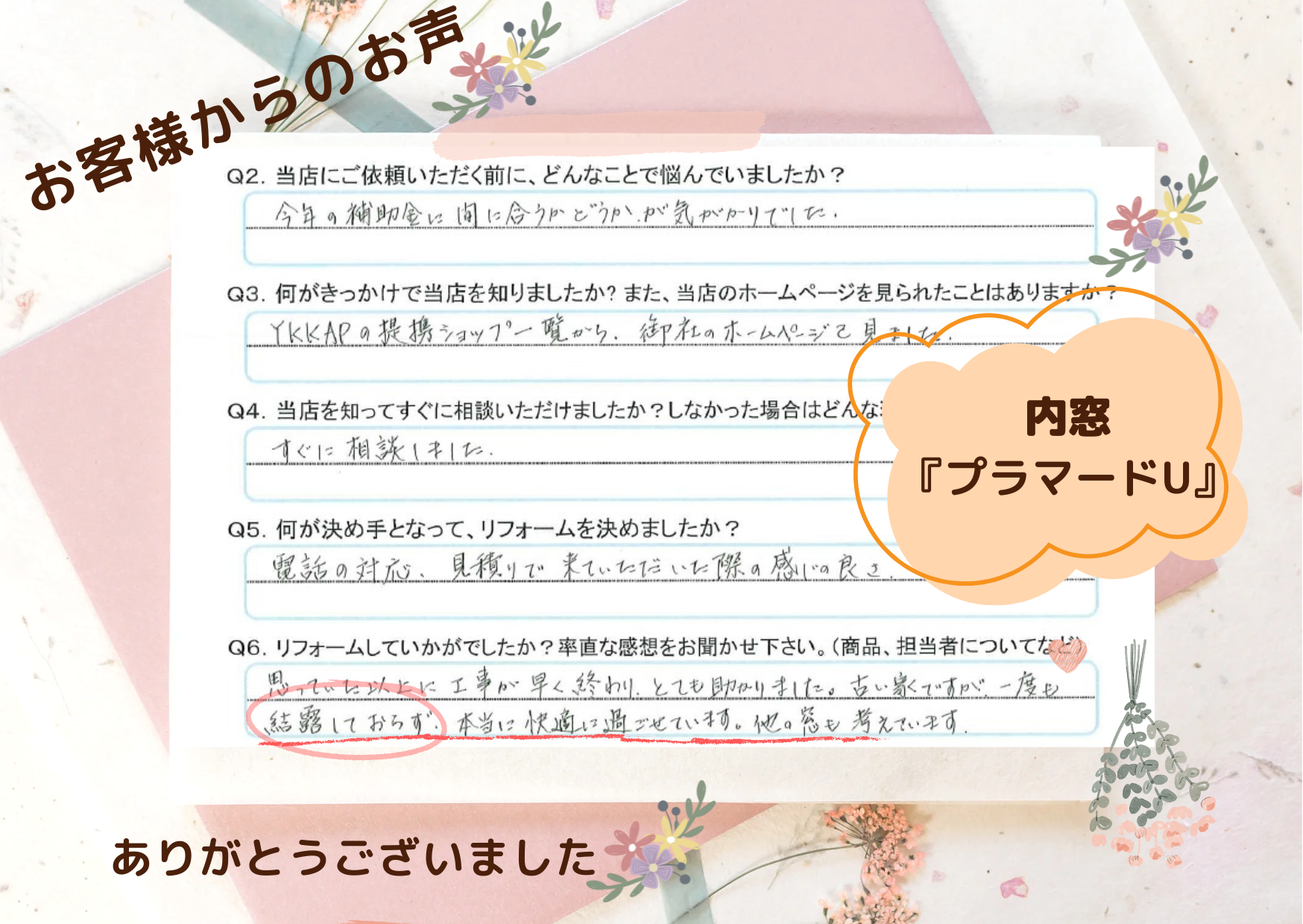 このたびは内窓工事をご依頼いただき、誠にありがとうございました。